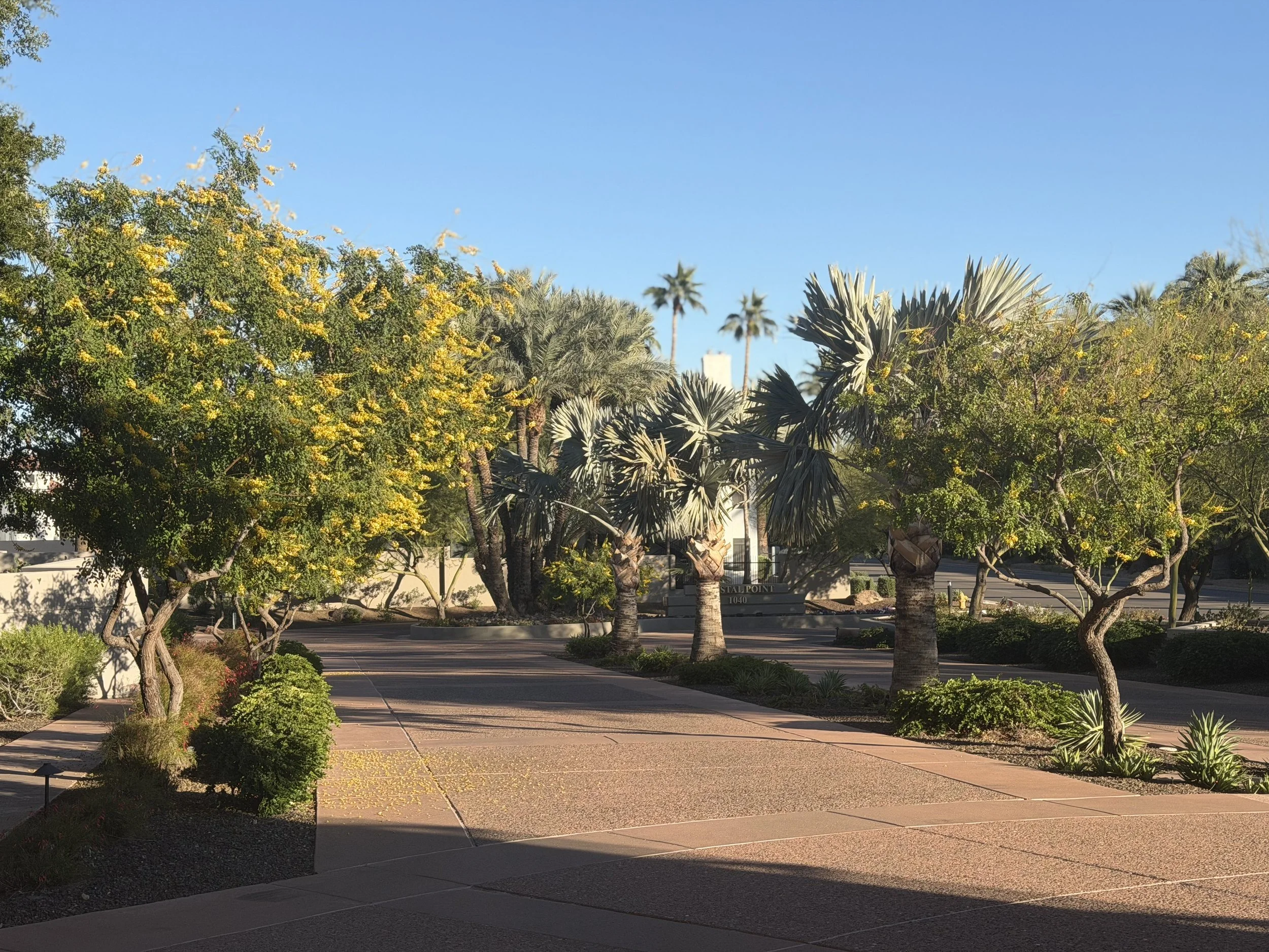 Resort-style arrival path offering a seamless transition from the serene outdoor environment into the building’s sophisticated architectural setting.